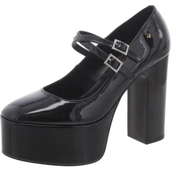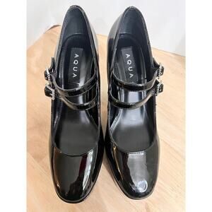 Aqua Emmy Black Faux Patent Leather Platform High Heel Mary Jane Pumps Size 7M