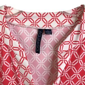 Aqua Et Sol Tunic Dress Womens Size L Red Orange UPF Long Sleeve Preppy V-Neck