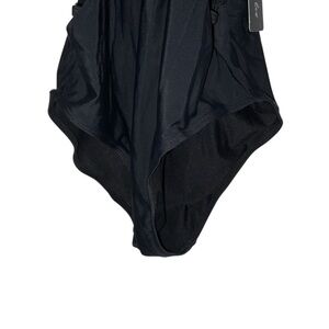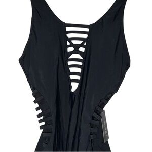 Make a splash in this stunning one-piece swimsuit from Aqua Eve! With a daring strappy cut-out design down the front and sides, this sleek black suit is equal parts sultry and supportive. Brand new with tags attached!