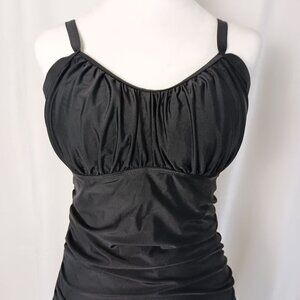 Aqua Eve Plus Size 12W Black One Piece Swimsuit NWT Padded Cups Slimming Fit