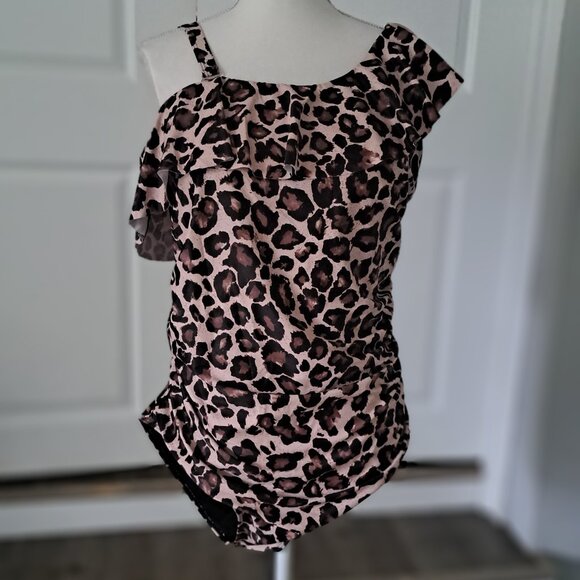 * # 409 * Fabric: 85% Polyester 15% Spandex * US Size: 22W Bust: 48.5- 50.5", Waist: 42.5 - 44.5", Hip: 50.5 - 52.2", *Color: Leopard * Clousure: Pull On * Plus Size one piece swimsuit Asymmetric One Shoulder bathing suit with ruffles and tummy control design, perfectly conceals your imperfections * There is a Little Band inside that secures in the back to help the bra cups stay in place and offer great support* The adjustable and removable shoulder straps enable the bathing suit to wear in two ways *Made with smooth. Quick dry and stretchy material for comfortable and durable wearing