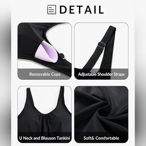 •Top: Shell: 82% Nylon, 18% Spandex; Lining: 90% Polyester, 10% Spandex Shorts: Shell 1: 85% Polyester, 15% Spandex; Shell 2: 82% Nylon, 18% Spandex; Lining: 90% Polyester, 10% Spandex •Blouson bathing Suit top with loose fit design can hide your tummy perfectly. Built in bra and adjustable shoulder straps provide good support. •High waisted swim shorts provide good tummy control. A slight slit-leg design is cute and flattering. •Made of quick-drying, stretchy, elastic, durable material.