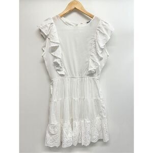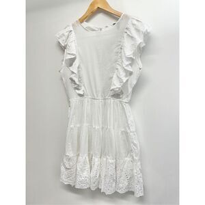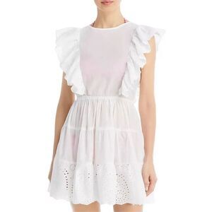 Aqua Eyelet Flutter Mini Dress Swim Cover-up Womens Size Medium in White NWT