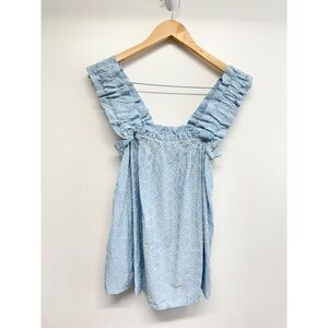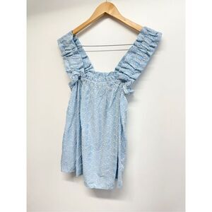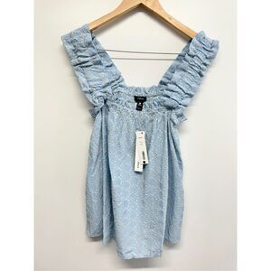 Aqua Eyelet Top Size Large Blue Ruffle Pullover Wide Strap Woven Tank NEW