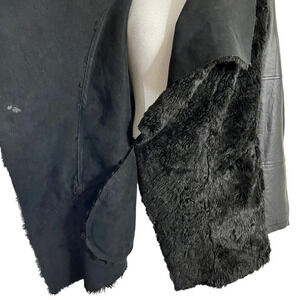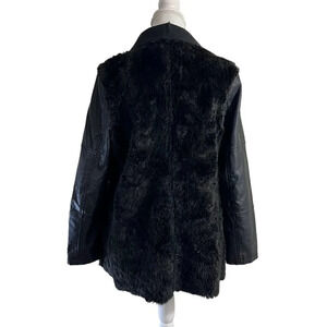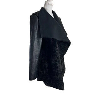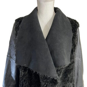 Aqua Faux Fur Faux Suede Black Jacket Size Medium Womens Draped V Neck Winter