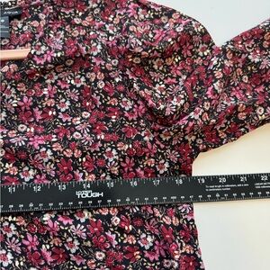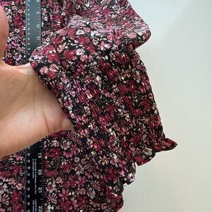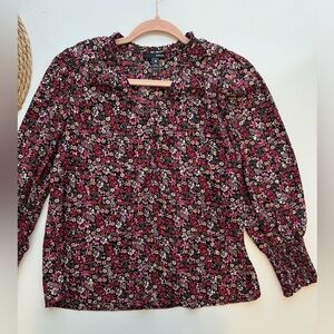 Aqua Floral Smocked Sleeve Top V- Neck Long Sleeve Pullover Small