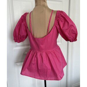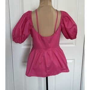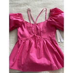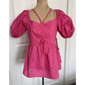 Aqua For Bloomingdale's Puff Sleeves 100% Cotton Halter Blouse Top Hot Pink