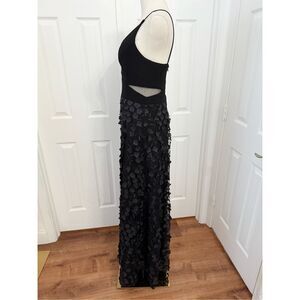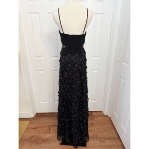Aqua Formal Mesh Black Floral Applique V-Neck Side Slit A-Line Maxi Gown Dress 2