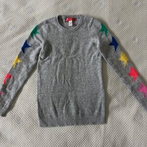 Aqua Girls Cashmere Crewneck long sleeve Sweater, Grey with Stars, Size S
