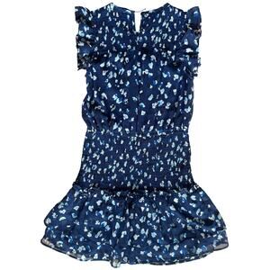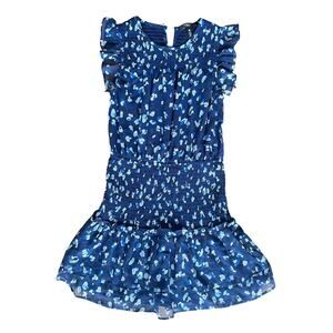 Aqua Girls’ Speckle Flutter Smocked Big Kid Dress, Navy Blue Floral - Size Large