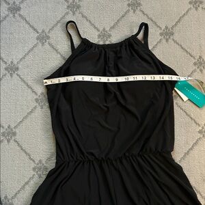 Aqua Green Black Halter Romper Swimsuit with Pockets