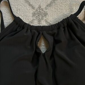 Stylish black sleeveless outfit. Perfect for any occasion.