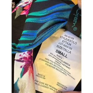 Aqua Green Black Tummy Control Floral One Piece Swimsuit Size Small or Medium New With Tag. Has removable padding and adjustable straps.