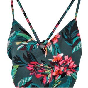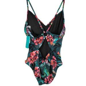 Aqua Green Floral One Piece Green Pink Open Back Swimsuit Womens X Large 16 18