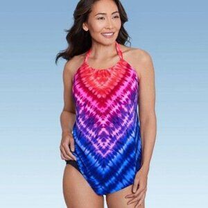 Aqua Green High Neck Angled Tankini Top UPF 50 Size Medium