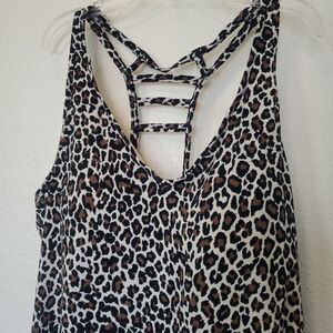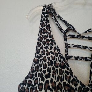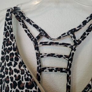 Aqua Green Leopard Print V Neck Tankini Swim Top Size 16W Animal Print Padded