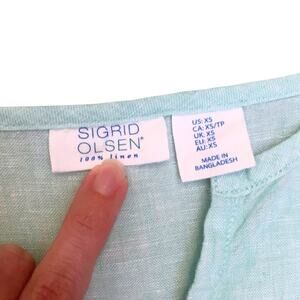 Aqua green midi dress by Sigrid Olsen. 100% linen. Size extra small (XS). Sleeveless. Vneck. Lightweight. Relaxed fit. Perfect for hot weather, beach, pool, vacation, travel, resort, cruise, etc. Use it as a dress or bathing suit coverup. Also for Spring and Summer events including Easter, beach weddings, brunch with friends, etc. Super cute. New without tags.