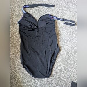 Stylish swimsuit with vibrant multicolor pattern. Features a sleek design. Size Large. Pet & Smoke Free Home
