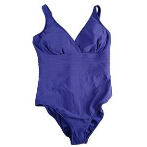 Aqua Green One Piece Swimsuit Womens XL Purple Solid Cheeky Padded V Neck NWT