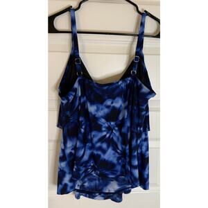 Aqua Green Plus 18W Blue Tie-Dye Tankini Swim Top Tiered Lined Adjustable