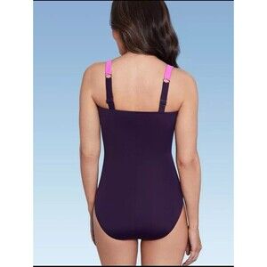 The Aqua Green Shape + Style Women's One Piece Swimsuit is a stylish swimwear designed for women in size 10. The swimsuit features a pink color and is made from a blend of 38% Spandex and 62% Nylon material, offering both comfort and flexibility for swimming activities. With UPF 50+ sun protection, this swimsuit not only looks great but also helps to protect the wearer from harmful UV rays. Perfect for a day at the beach or by the pool, this swimsuit combines fashion and functionality for a comfortable and stylish swimwear option.