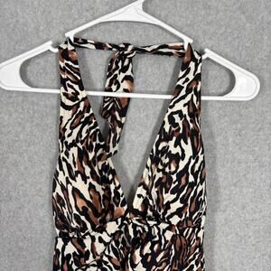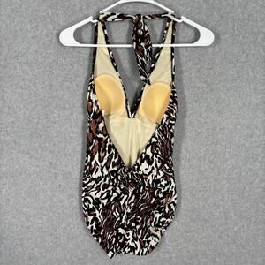 Aqua Green Swimsuit Small One Piece Leopard Animal Halter Ruched Low Back Sexy