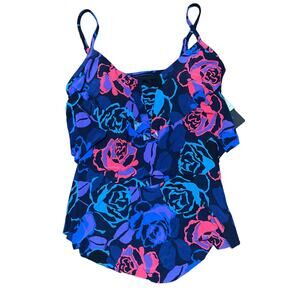 Aqua Green UPF 50 Tiered Tankini Top Multi Floral Print Size L
