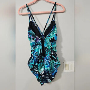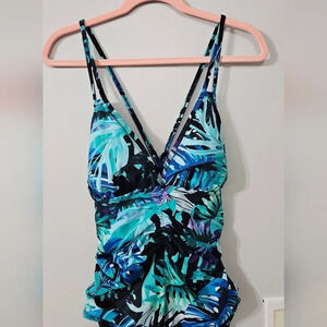Aqua Green Women’s Floral Tropical Ruched One-piece Swimsuit XL Extra Large