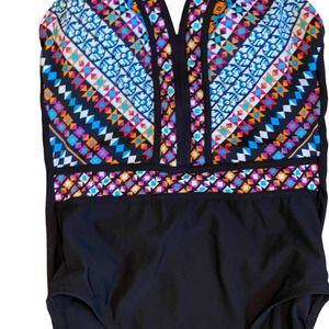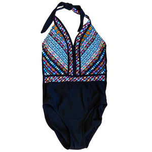 Aqua Green Womens Halter Top One Piece Swimsuit Aztec Design Small