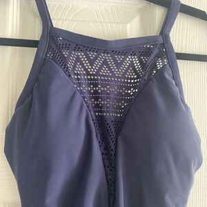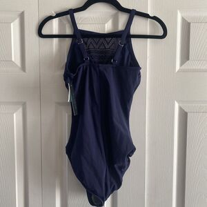 Aqua Green Women's Navy One Piece Swimsuit Slimming Ruche NEW Small Swim Beach