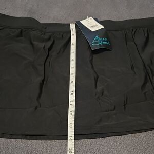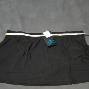 This chic black swim skirt from Aqua Green features a flattering silhouette, making it a versatile addition to any swimsuit top. Very stretchy yet slimming.