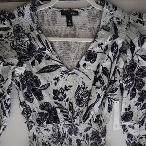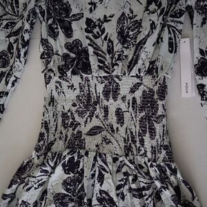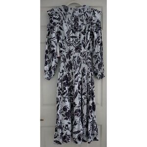 Aqua IDK7298 Women's Sz XS Blue Multi Smocked Floral Print Midi Dress $118