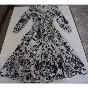 Aqua IDK7298 Women's Sz XS Blue Multi Smocked Floral Print Midi Dress