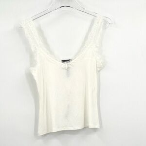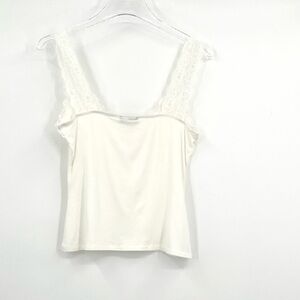 Aqua Knit Lace Trim Camisole Top in White NWT