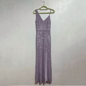 Aqua Lavender Sequined Asymmetrical Maxi Gown Sz 4 NWT