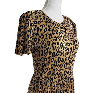 Aqua Leopard Cheetah Animal Pattern Dress Size XS Pleated Short Sleeves Thin