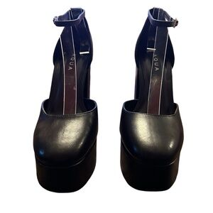 Aqua Lisa Black Leather Platform Shoes Size 8.5