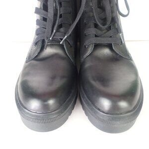 Aqua Womens Logan Leather Platform Hiker Boots Black Size 9.5M