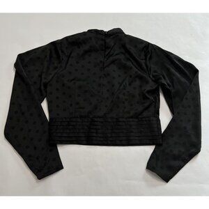Aqua Long Sleeve Polka Dot Crop Top in Black