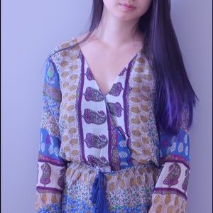 Cute longsleeve romper. Criss cross front, elastic tie waist belt, longsleeve. Sizes available: Small, Medium, Large