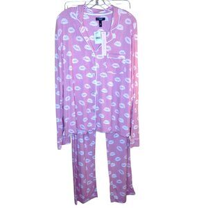 Aqua Lounge Kiss Lips Sleep Set Pajamas Loungewear XL NWT