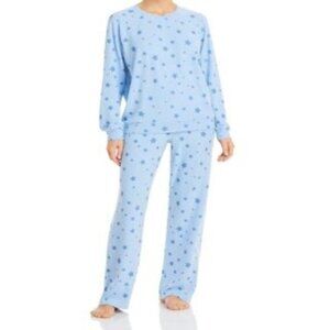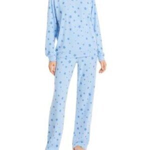 Aqua Lounge Long Sleeve Pajama Set Drawstring Pants Star Print Blue XS NWT