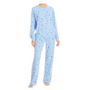 Aqua Lounge Pajama Set Star Print Blue Medium NWT