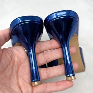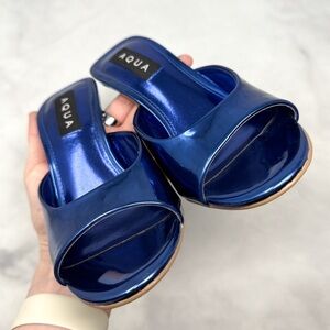 Aqua Lucid Open Toe Slip On Mule Heels Metallic Chrome Blue Retro Rave 90s 5.5