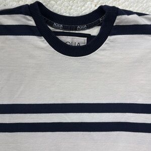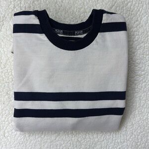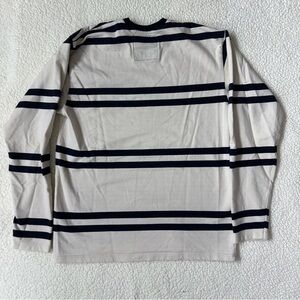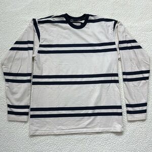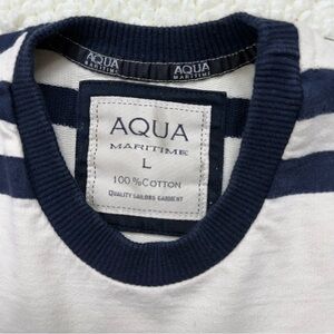 Aqua Maritime Blue Cream Striped Long Sleeve Crewneck Shirt