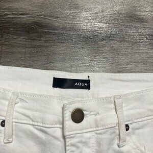 Women’s casual denim shorts from Aqua! Light stretch material great for any outfit. Mid rise waist, scallop edge, stretch fabric. New with tags still attached, perfect condition!