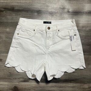 Aqua Mid Rise Scallop Hem Denim Shorts White NWT Women’s Size 25