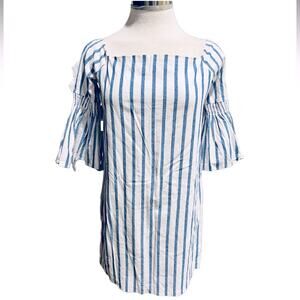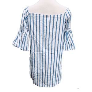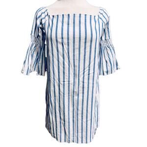 Aqua Mini Dress Blue/White Cotton Striped 3/4 Bell Sleeve Size S