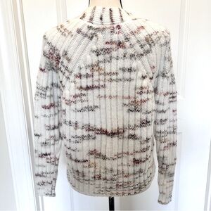 This cream and brown cardigan features an artistic knit design, perfect for adding a touch of style to any outfit. Its long sleeves and cozy material make it an ideal choice for cooler days. The unique pattern adds a distinctive flair, making it a standout piece in your wardrobe. Soft. Good condition.