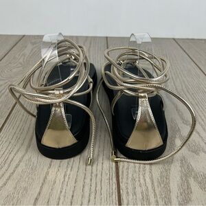 New in box, Aqua Muse Women's Strappy Ankle Tie Thong Sandals, size: 10 women's, color: Gold, MSRP $100, in box.